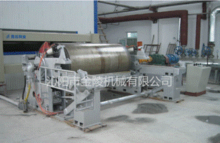 本機是用于造紙機后面的一套完成設(shè)備,卷紙缸為主動運轉(zhuǎn),靠摩擦帶動卷紙輥轉(zhuǎn)動完成紙張的卷取工作。操作通過調(diào)整副臂、主臂氣缸的壓力來調(diào)節(jié)卷紙輥與卷紙缸的線壓力,可滿足不同紙種的需要,使造紙機下來的紙張卷成緊密均勻的卷筒紙。